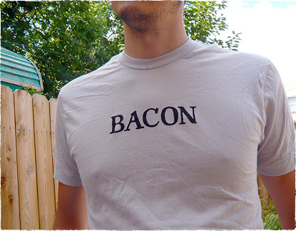 This shirt was hand-screened by Matt Sutter himself, who owned the original Bacon shirt, as depicted in Birthday Squad. Consequently, it was a very small run and supplies are limited, so act now. I mean... act now!